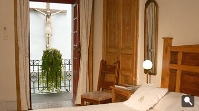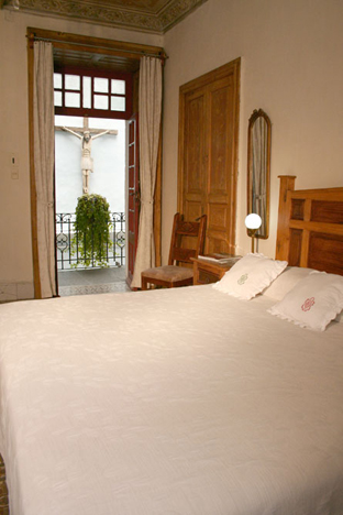 The Room is decorated with many paintings by Botero and has a beautiful ceiling from the original style of the house. The room has a king size bed and a lovely balcony with a view to the Historical Center.